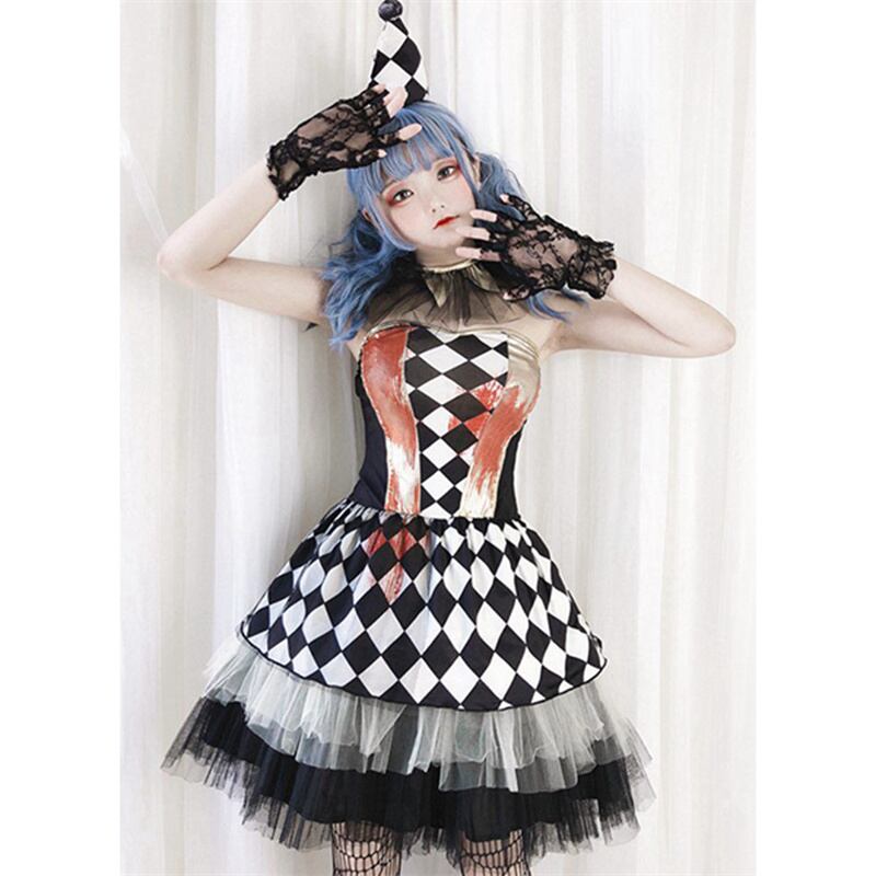 (3点セット)ハロウィン コスプレ ピエロ 衣装 レディース 学園祭 文化祭 cosplay ワンピース77507252