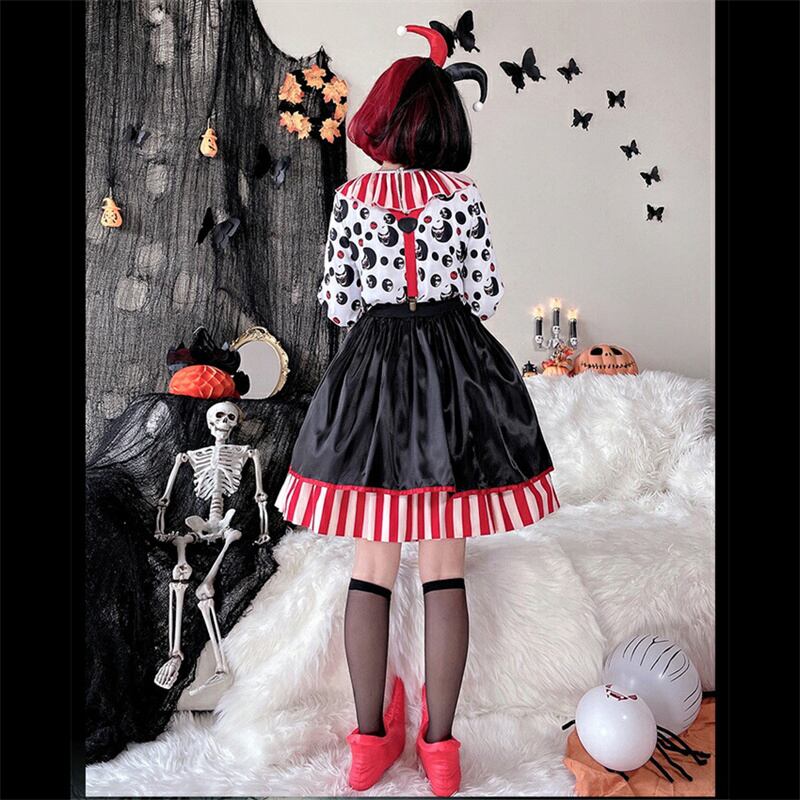(2点セット)ハロウィン コスプレ 配色 プリント ピエロ 学園祭 文化祭 cosplay セットアップ77531008