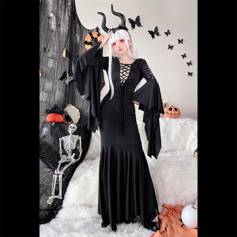 ハロウィン 女王様 魔女 巫女 リボン 学園祭 文化祭 cosplay S-XL エレガント ワンピース77624466