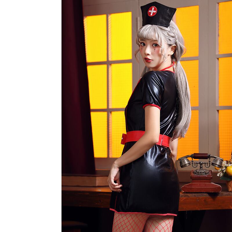 (3点セット)ハロウィン PU ナース コスプレ 看護婦 仮装 パーティー お祭り ワンピース78087113