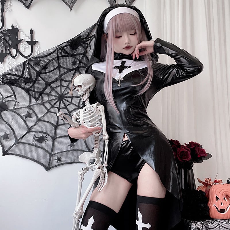 (3点セット)ハロウィン 修道女 仮装 学園祭 文化祭 制服 大きいサイズ ワンピース78632617