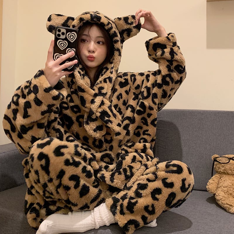2023新作✿ ヒョウ柄くま フード付き 可愛い パジャマ 着ぐるみ もこもこ 動物 ルームウェア80554458