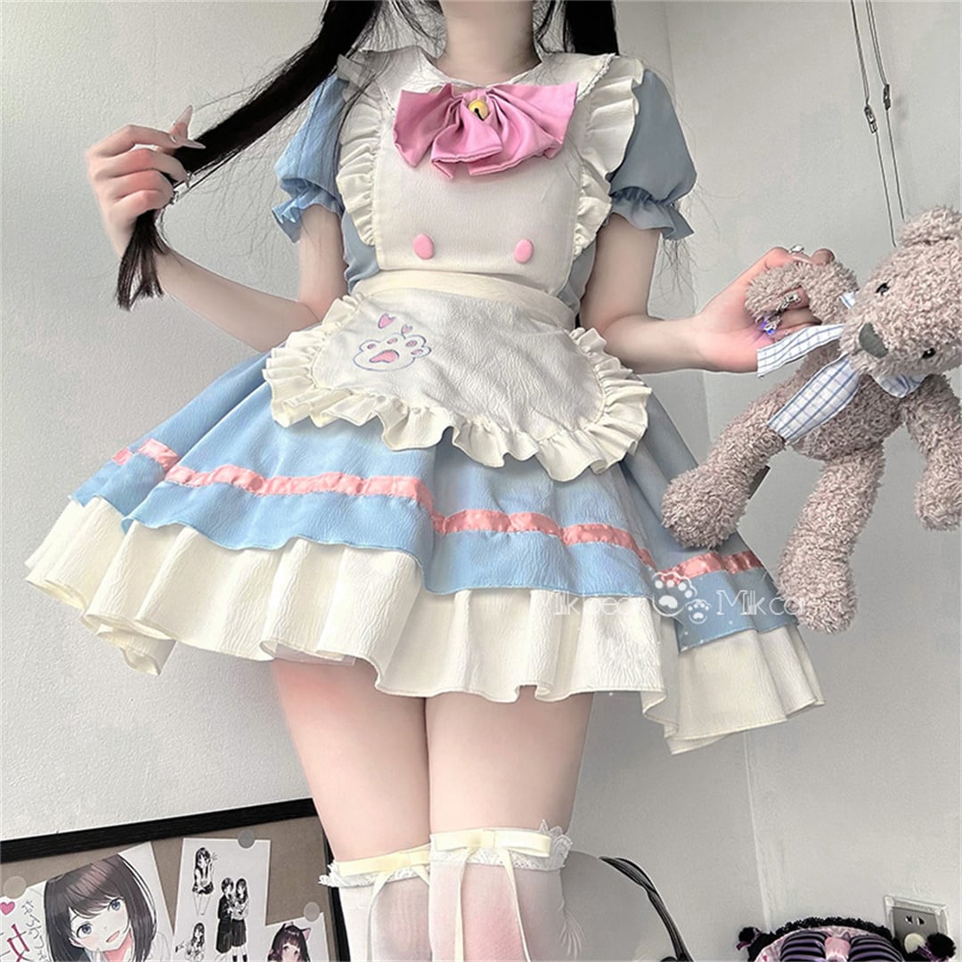 (2点セット)可愛い コスプレ メイド服 ブルー ブラック S M L XL ワンピース84937694