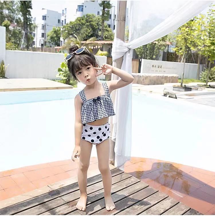 (80cm-130cm) チェック柄 水玉柄 女の子 セットアップ タンキニ 水着85481879