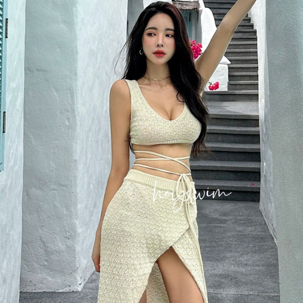 (3点セット)セクシー シンプル 無地 不規則 ワイヤーなし M L LL ビキニ 水着86205001
