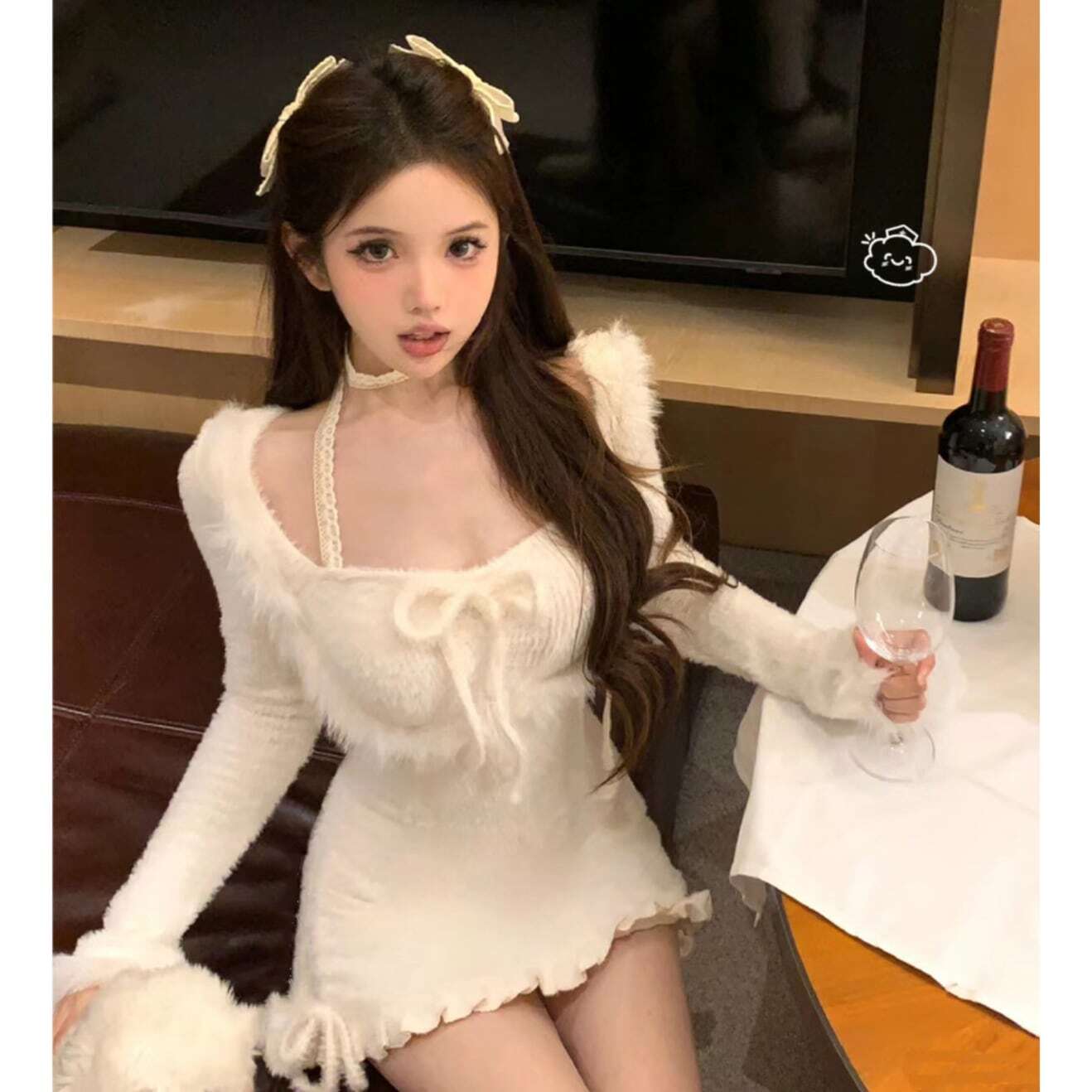 クリスマス ふわふわ キュート リボン 可愛い セクシーホワイト ワンピース94003780