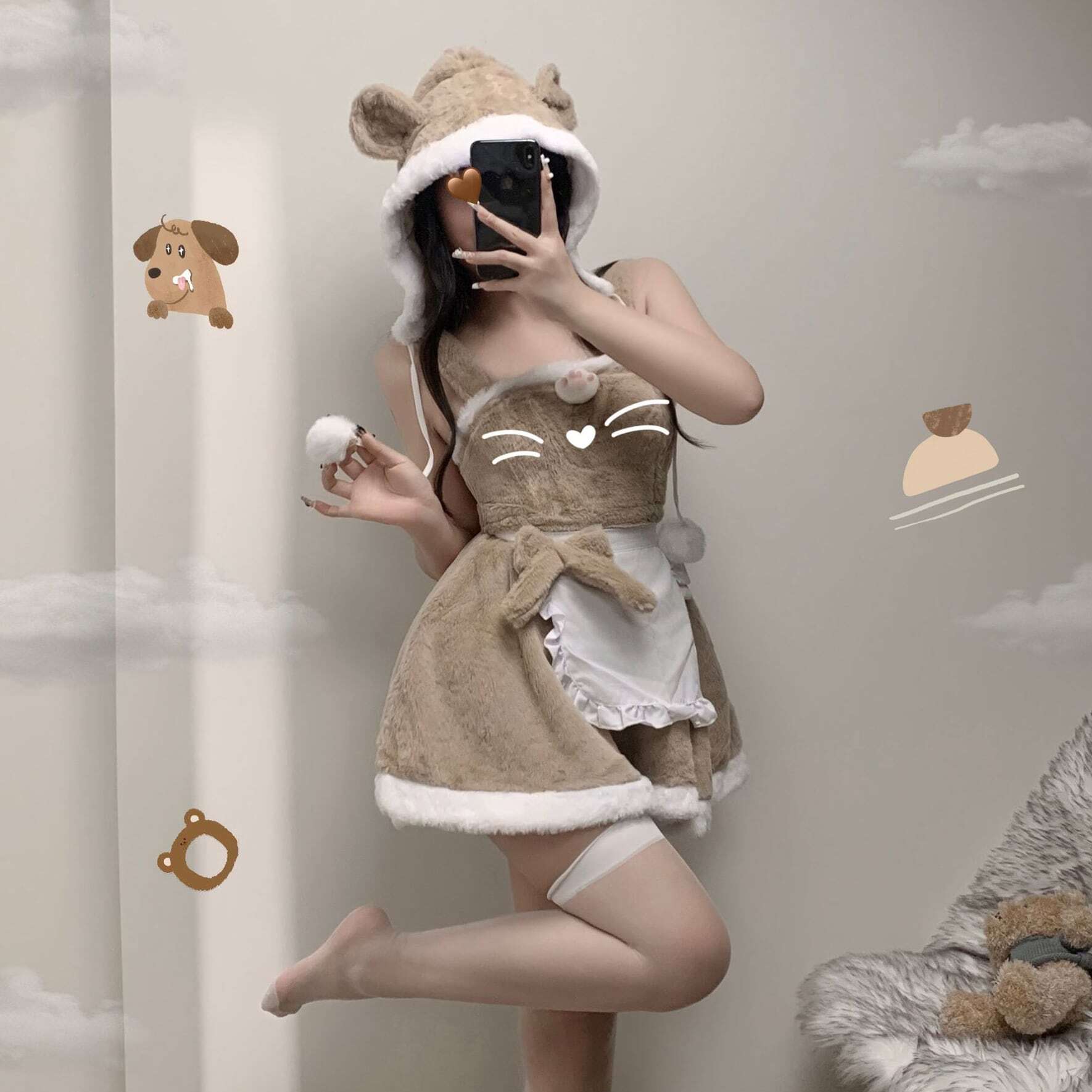 (3点セット)クマ フード付き 可愛い ふわふわ コスプレ 帽子付き ワンピース94331396